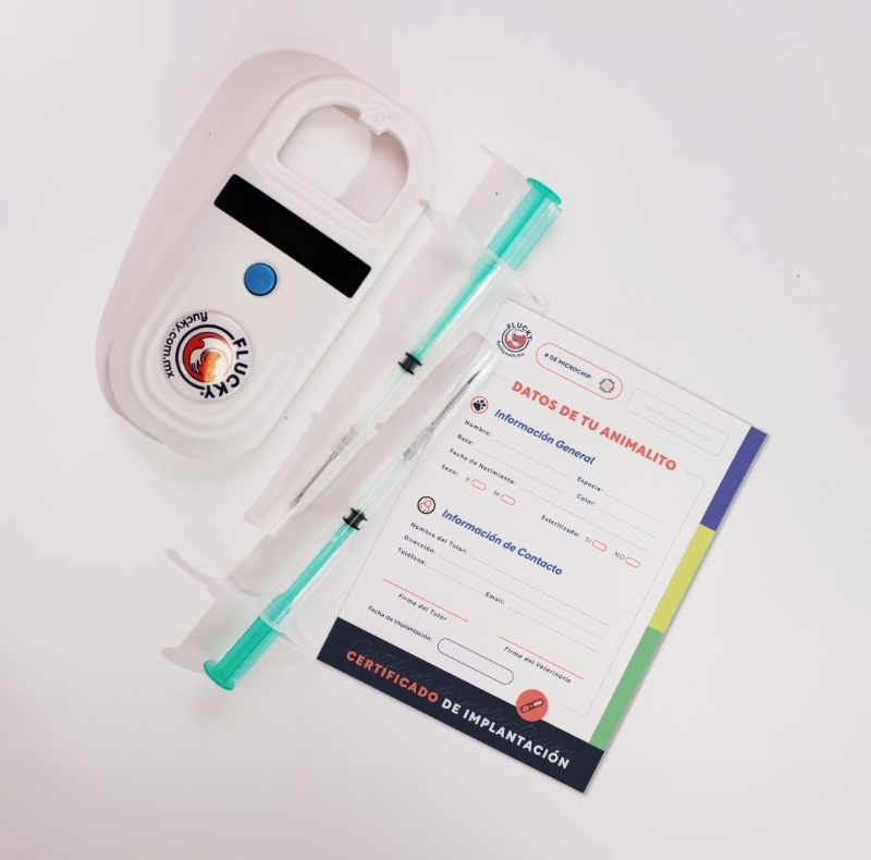 El Kit de Inicio Flucky tiene todo lo que necesitas para comenzar a ofrecer el servicio de microchips de forma profesional.